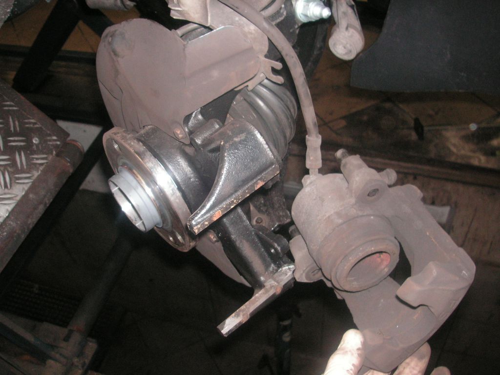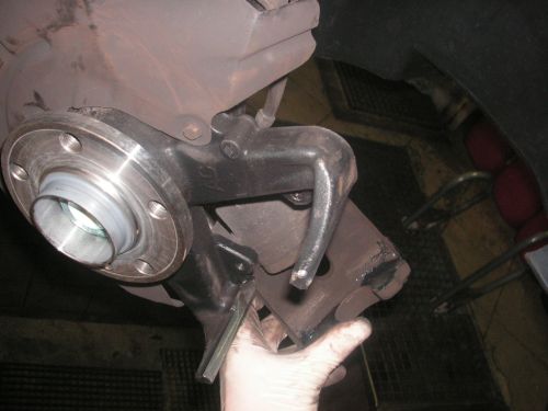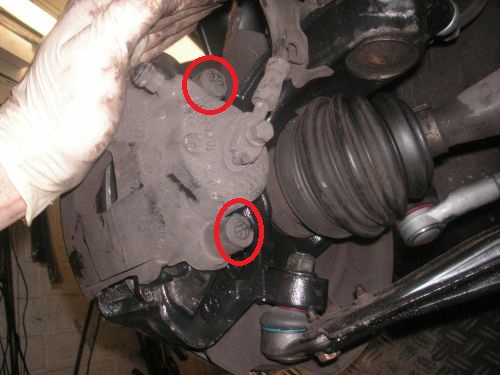 Das Abnehmen der Bremsscheibe ohne Demontage des Bremssattelhalters ist bei vielen Fahrzeugen nicht ohne weiteres möglich, da die Ausführung des Bremssattels bzw. des Bremssattelhalters variiertt und dieser ggf. mit zwei Schrauben am Achsschenkel verschraubt ist.