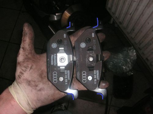 Die Auflagepunkte der Bremsbeläge am Bremssattel müssen ebenfalls sauber geschliffen und mit Plastilube versehen werden. Der Bremssattelkolben wird zudem bis zum Anschlag nach hinten in den Bremssattel gedrückt.