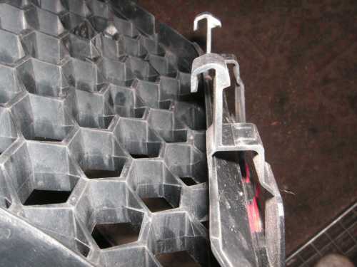 Allerdings muss zunächst der Gittereinsatz ausgebaut werden, da sich unter diesem weitere Befestigungsschrauben für den Stoßfänger befinden.