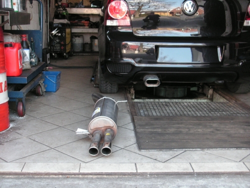 Um einen GTI-Endschalldämpfer beim Polo 9n/9N3 zu verbauen gibt es nur an einer Stelle ein Problem: Dem unterschiedlichen Rohrdurchmesser der Auspuffanlage.