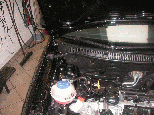 Um das Kabel "unsichtbar" zu verlegen hab ich in der Spritzwand, hinter der Dämmmatte, ein kleines Loch gebohrt und das Kabel hinter der Wand verlegt!