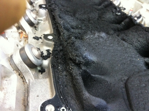 Soviel Ruß hat sich Dank der AGR im Ansaugtrakt gesammelt. Die Schicht hat etwa eine Stärke von 5-6mm! |