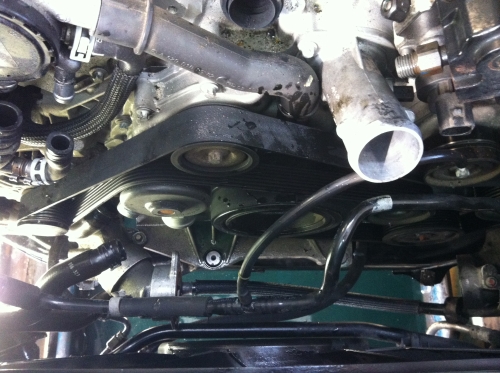 Den Flachrippenriemen sollte man bei Gelegenheit auch gleich erneuern, denn diesen auszutauschen ist im zugebauten Zustand eine elendige Arbeit! |