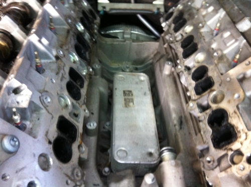Nachdem der Ladeluftkühler demontiert ist, sieht auch die Vorderseite des Motors rest übersichtlich aus. |