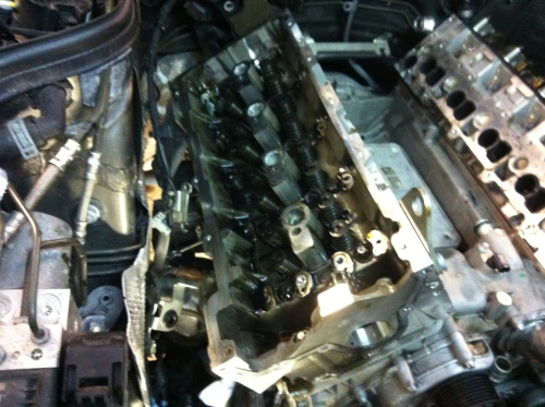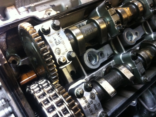 Die Nockenwellen inkl. Hydrostösseln müssen an beiden Seiten komplett ausgebaut werden da die Zylinderkopfschrauben sonst unzugänglich sind. |