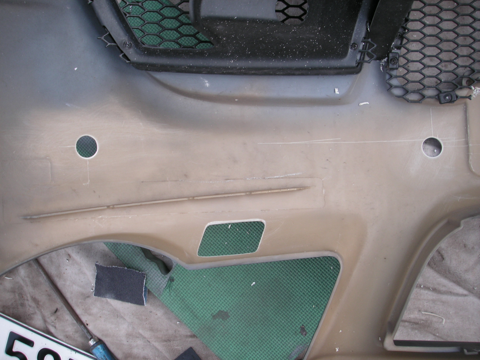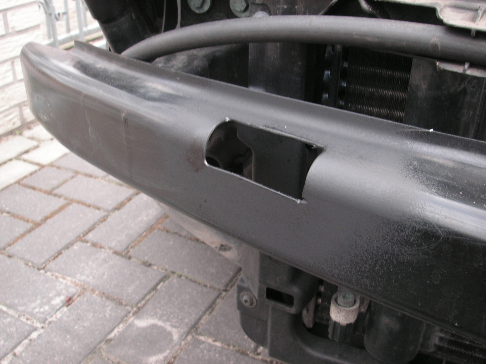 Da die beiden inneren PDC Sensoren eine größere Einbautiefe haben als es dem Querträger lieb ist, muss dieser an beiden Seiten entsprechend aufgeflext werden.