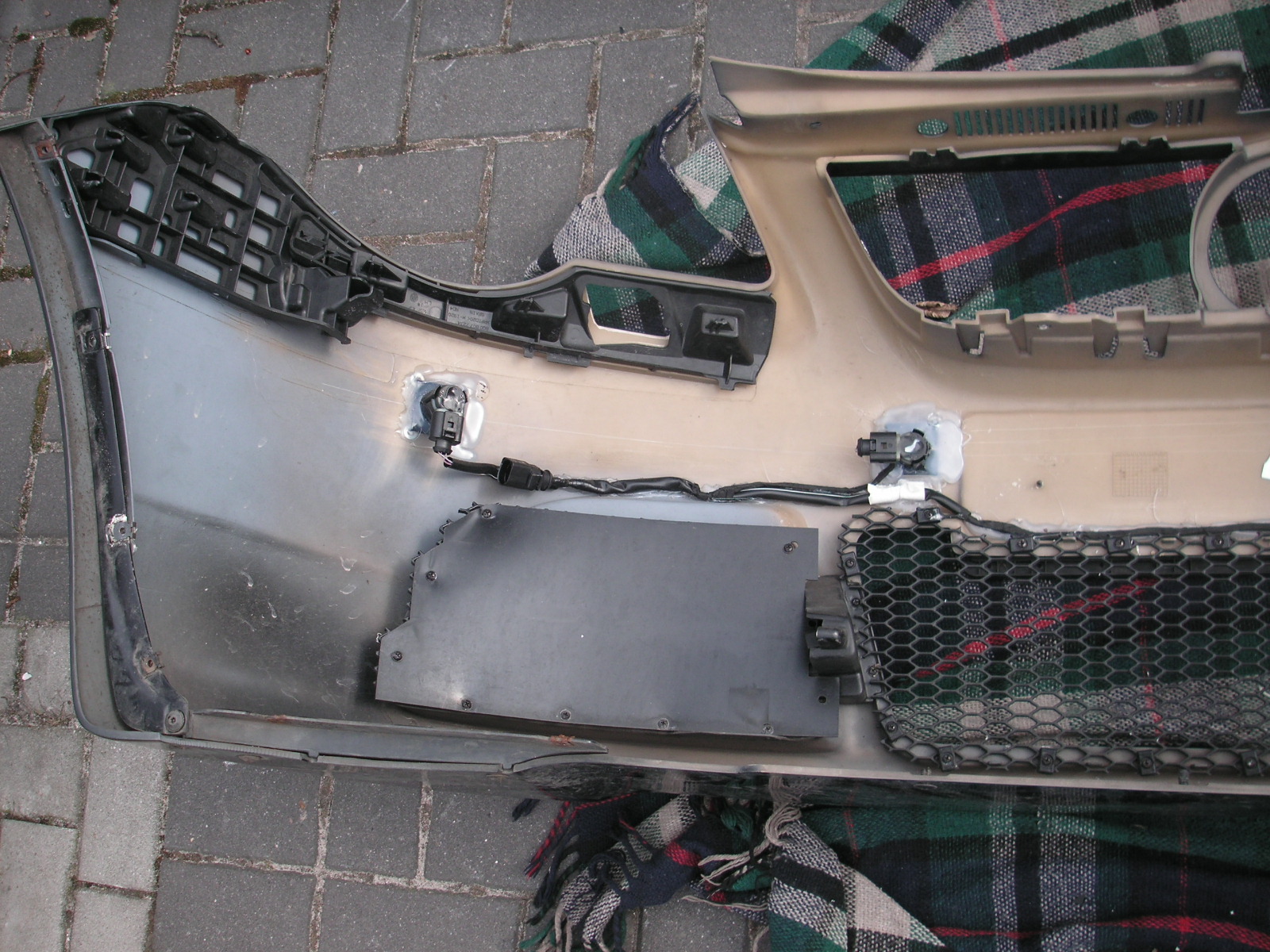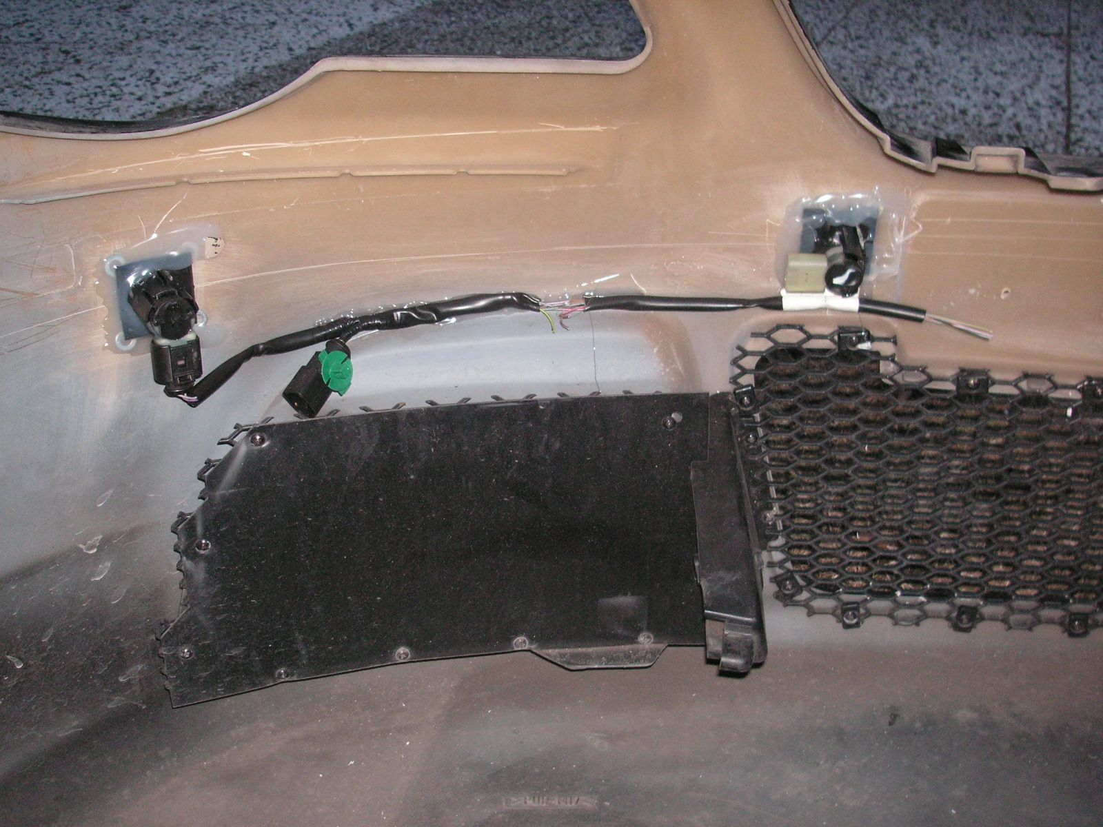 Der Kabelbaum vorne im Stoßfänger ist eigentlich für den hinteren Stoßfänger vorgesehen und muss entsprechend von der Länge angepasst werden.