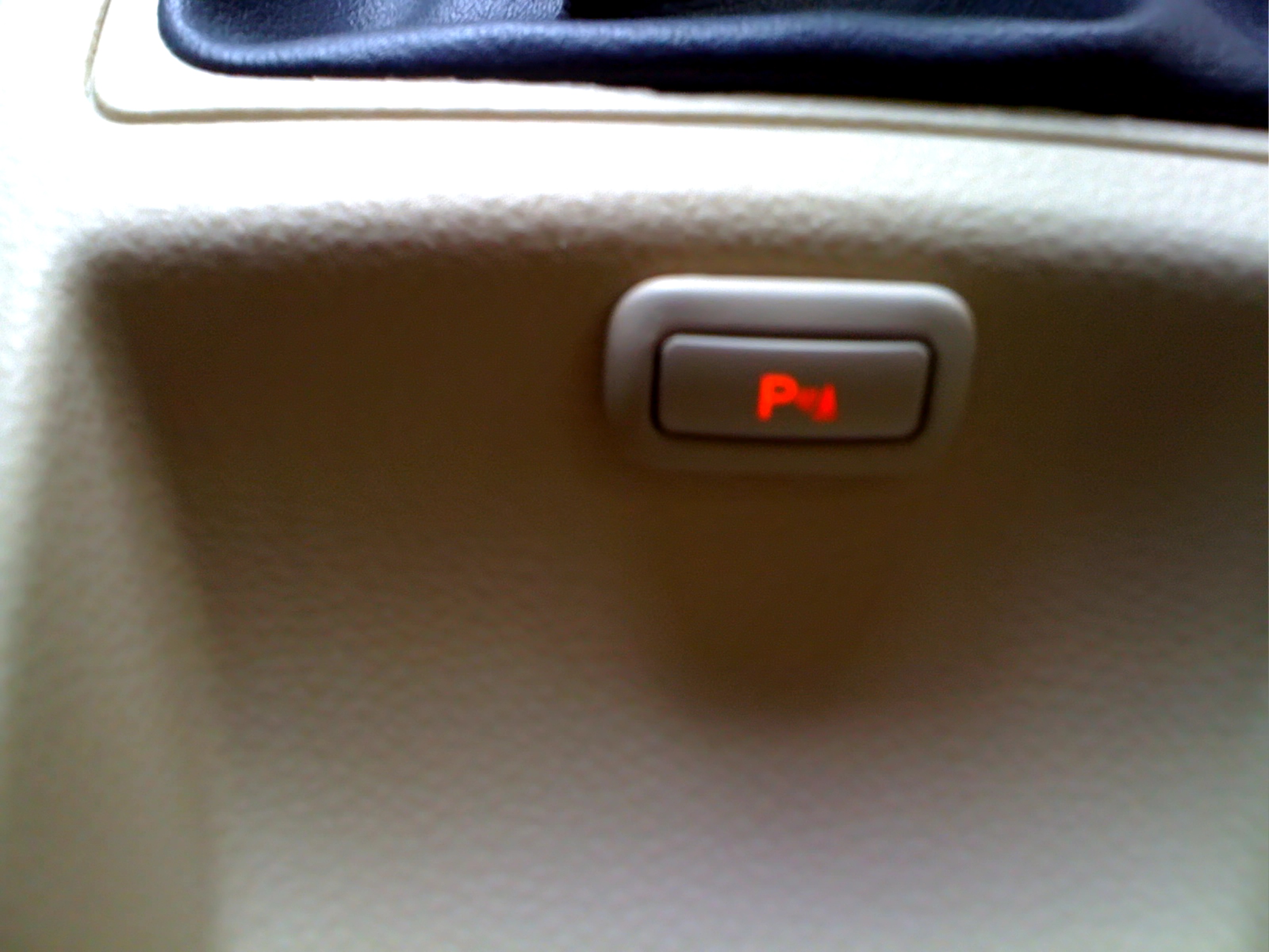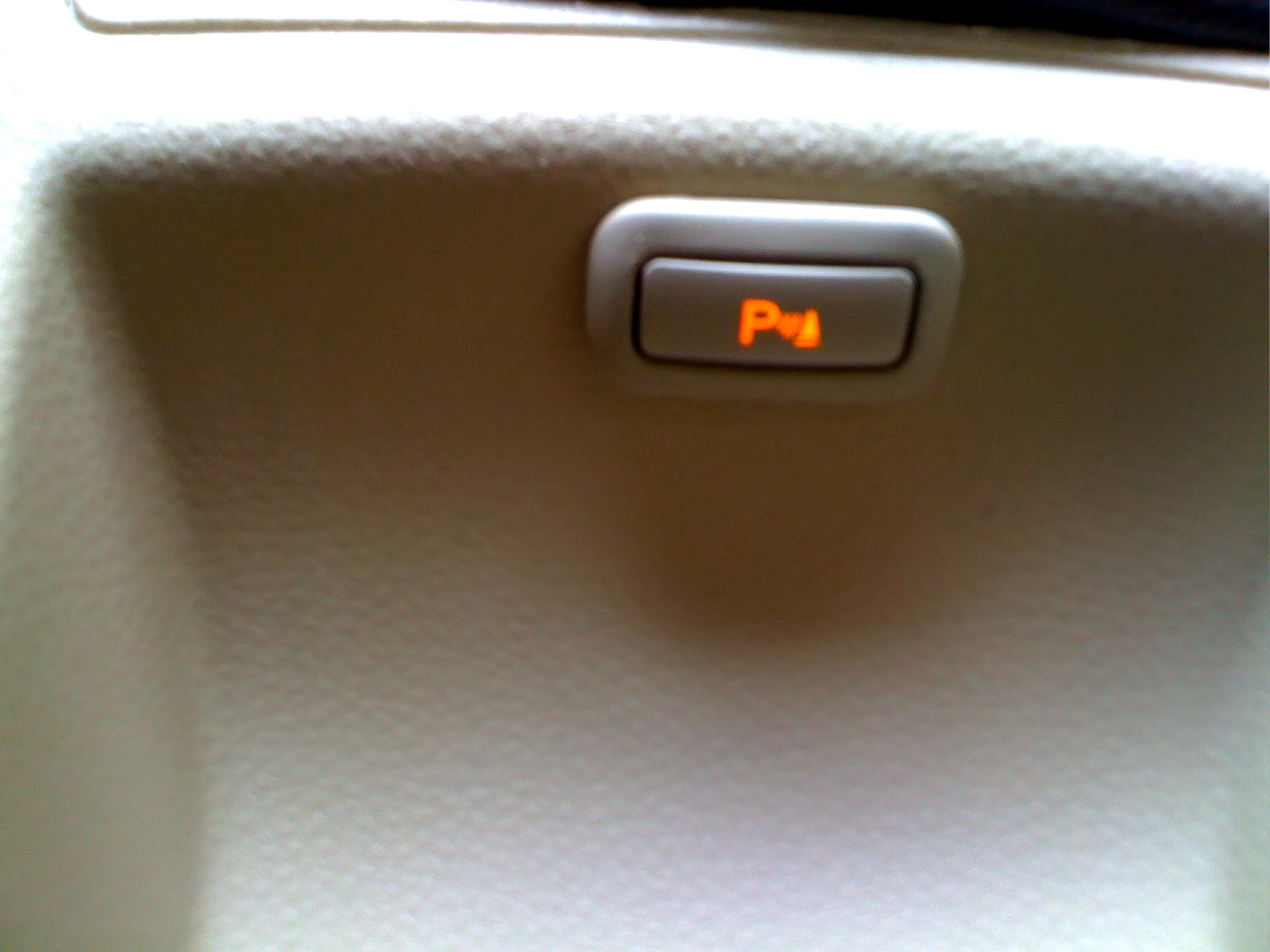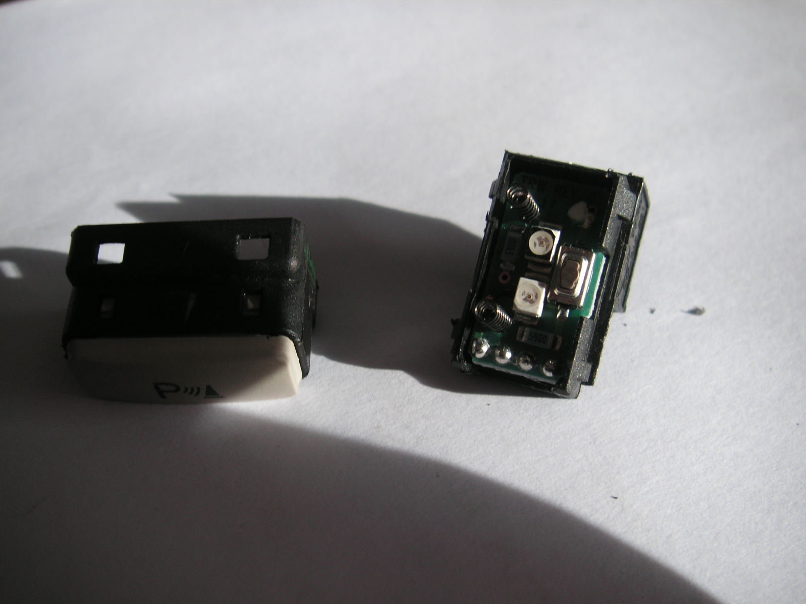 So sieht dann das Ergebnis aus. Mit eingeschalteter Beleuchtung leuchtet der Schalter rot, beim Einlegen des Rückwärtsgangs oder beim Betätigen des Schalters leuchtet eine gelbe LED (siehe unten) und die Einparkhilfe ist aktiviert. |