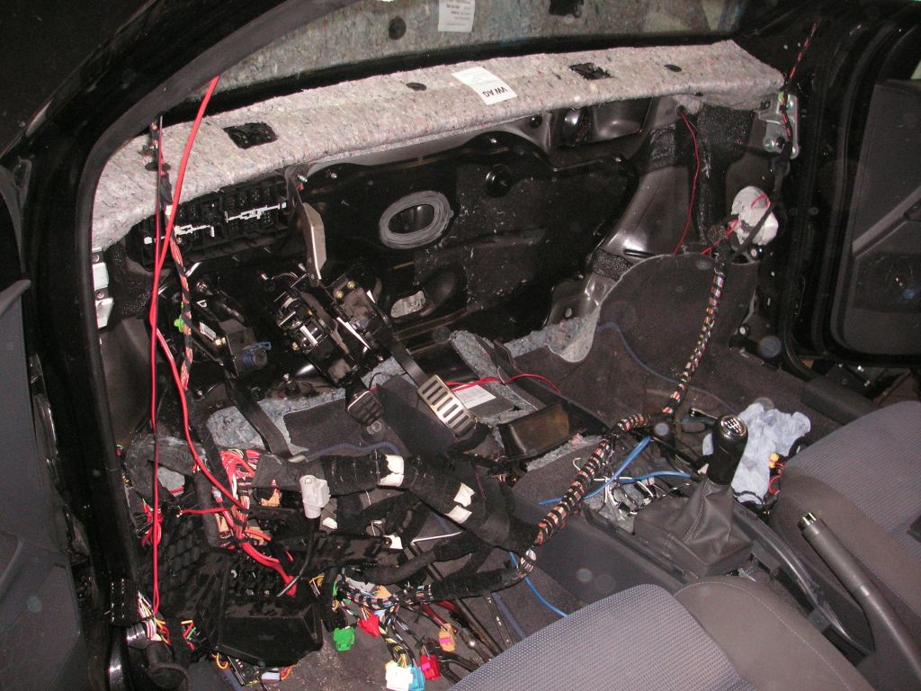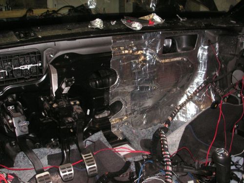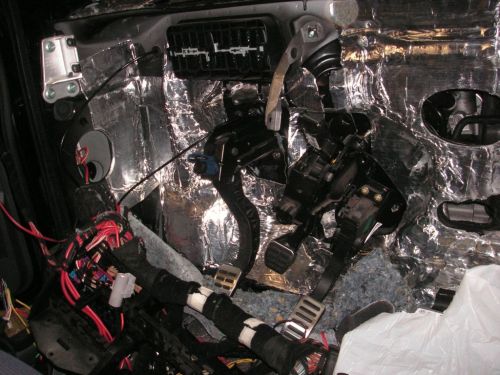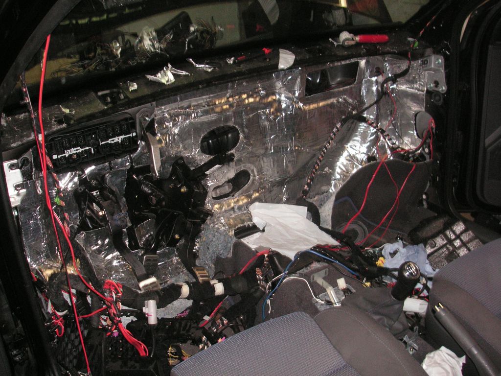 Um die Trennwand zum Motorraum vom Fahrgastraum aus dämmen zu können, müssen sehr viele Teile ausgebaut werden. Sprich, Armaturenbrett, Gebläsekasten, Pedalerie, Lenksäule etc...