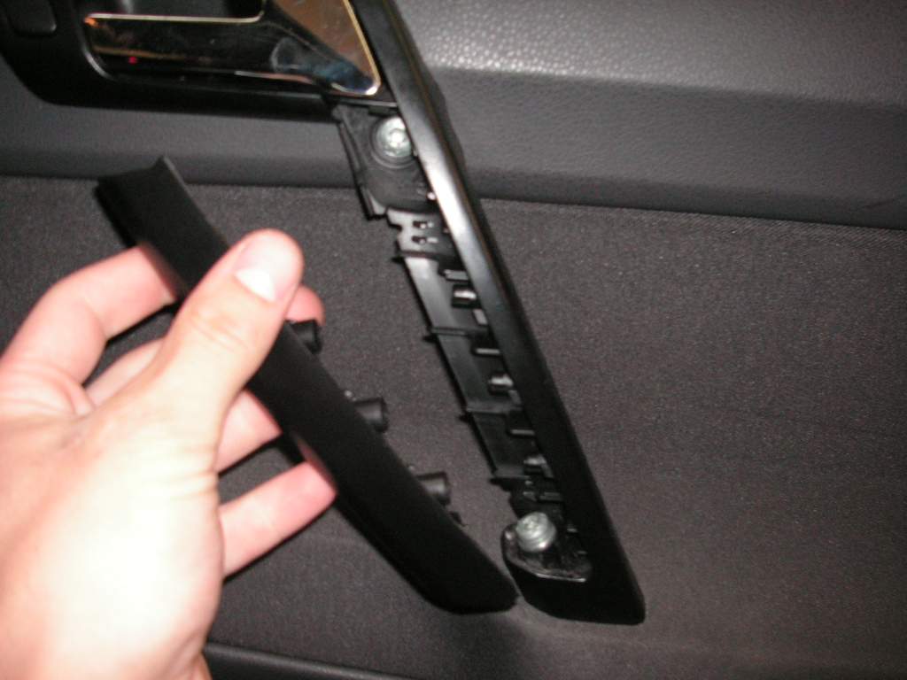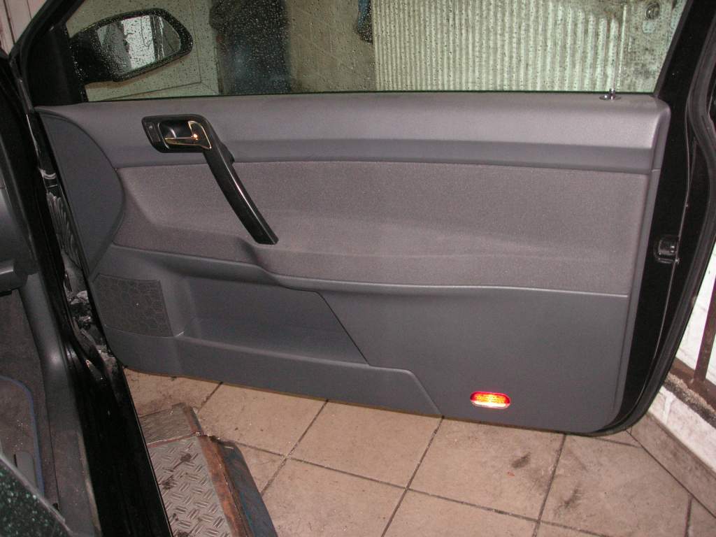 | Jetzt nur noch die paar kleinen Schrauben unten an der Verkleidung rausdrehen und ihr könnt die Türverkleidung mit einem Schaber vorsichtig, Stück für Stück von der Tür abhebeln. Diese ist nämlich mit vielen Klips an der Tür befestigt, der gerne abbrechen ;-) Anschließend noch den Seilzug des Griffs aushaken und den Stecker der Türwarnleuchte ausklipsen. |
